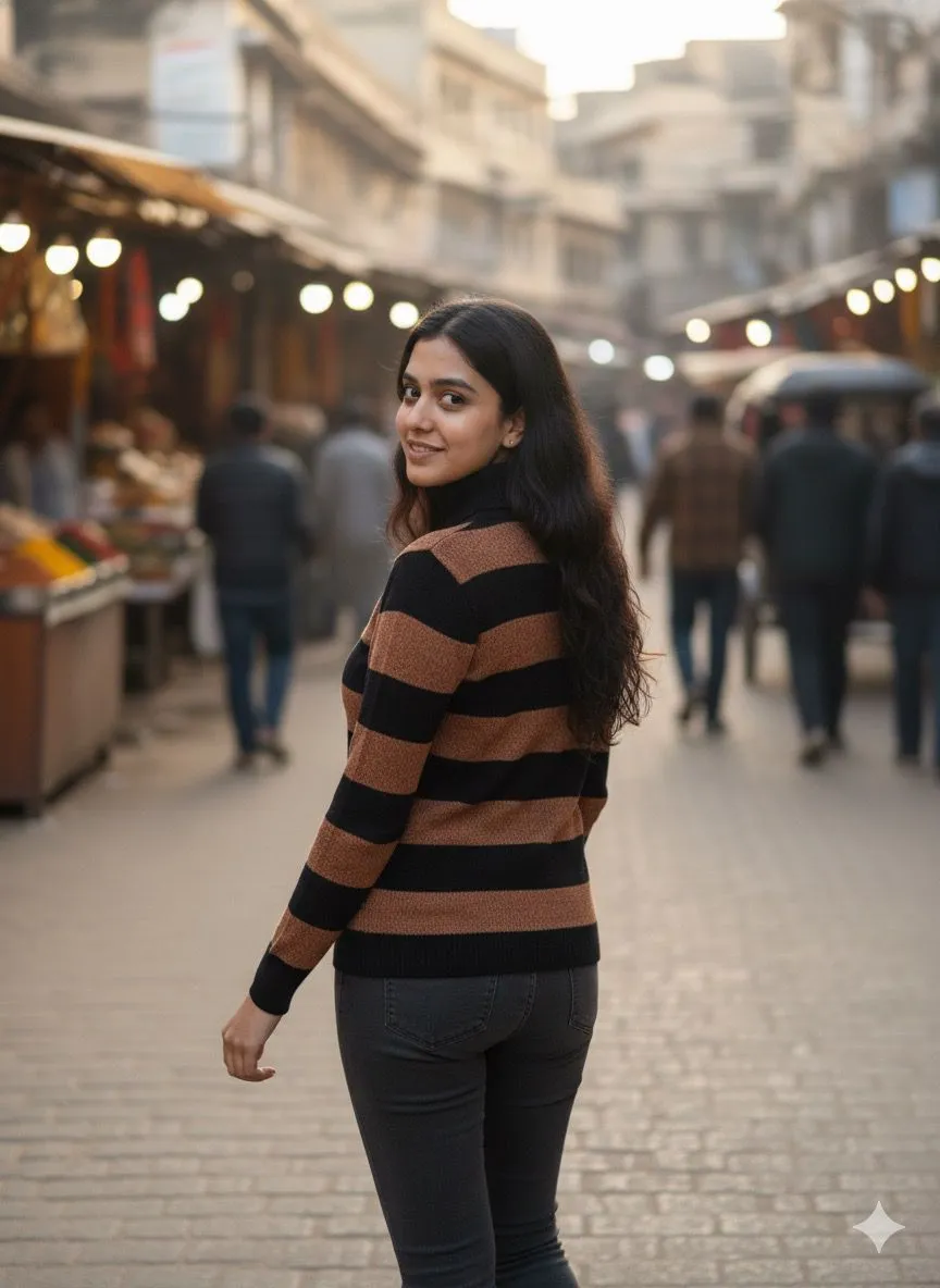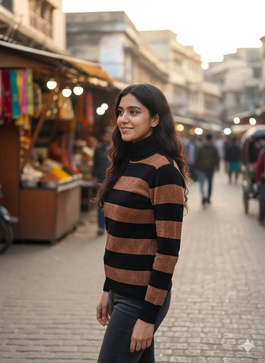 Black & Brown High Neck Velvety Texture Top