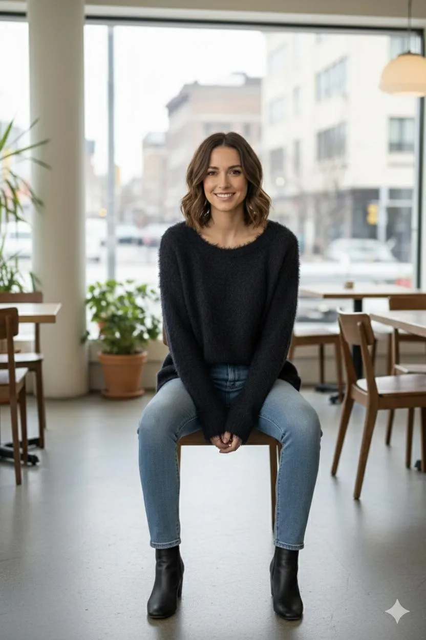 Black Woolen Fur Top