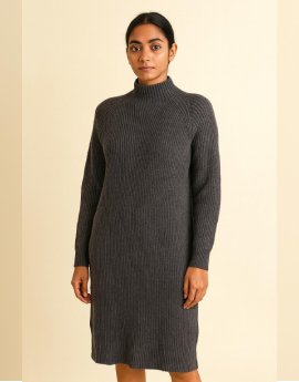 Charcoal High neck Knitted Dress