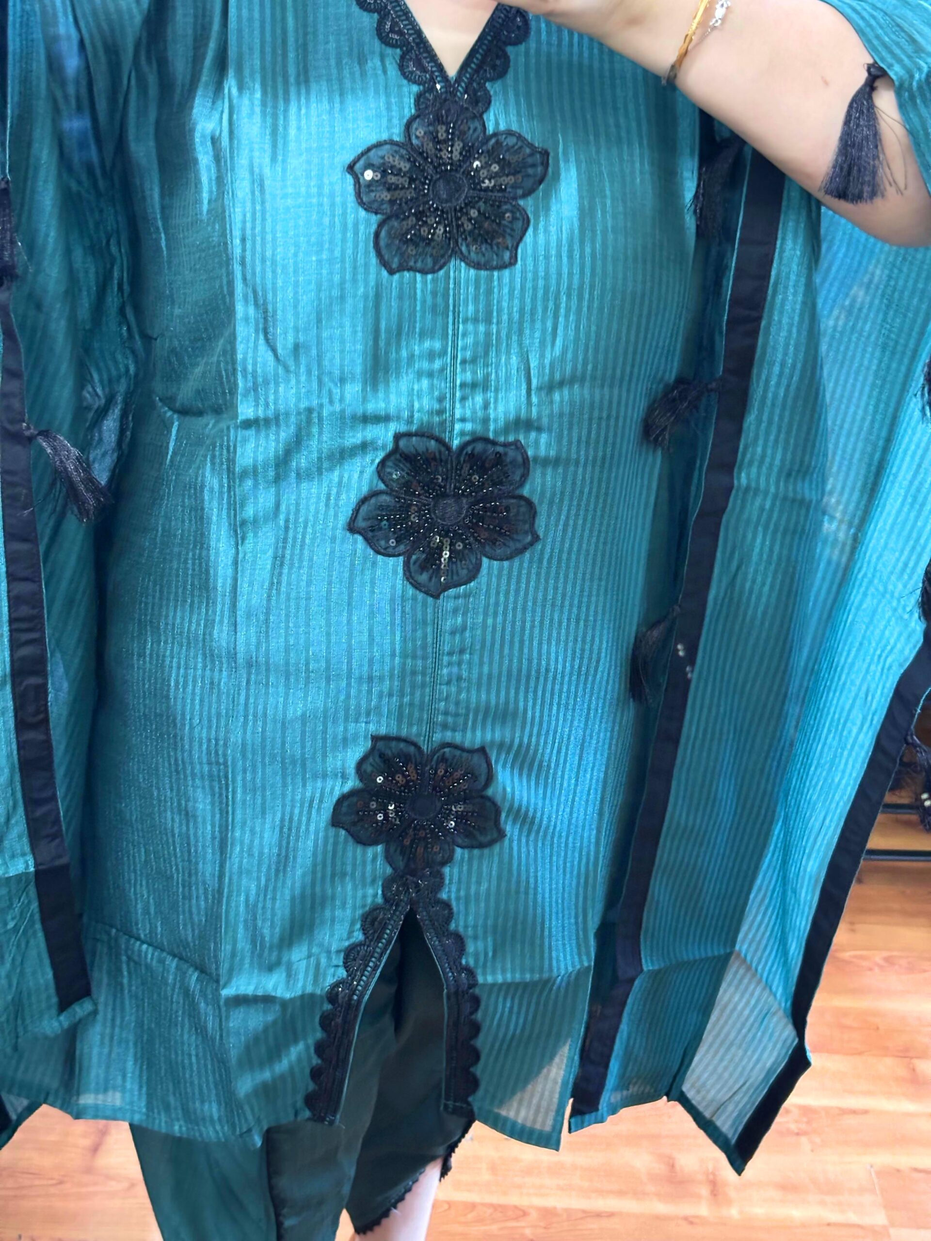Top: Cotton blend Kaftan style with patch and sequence work