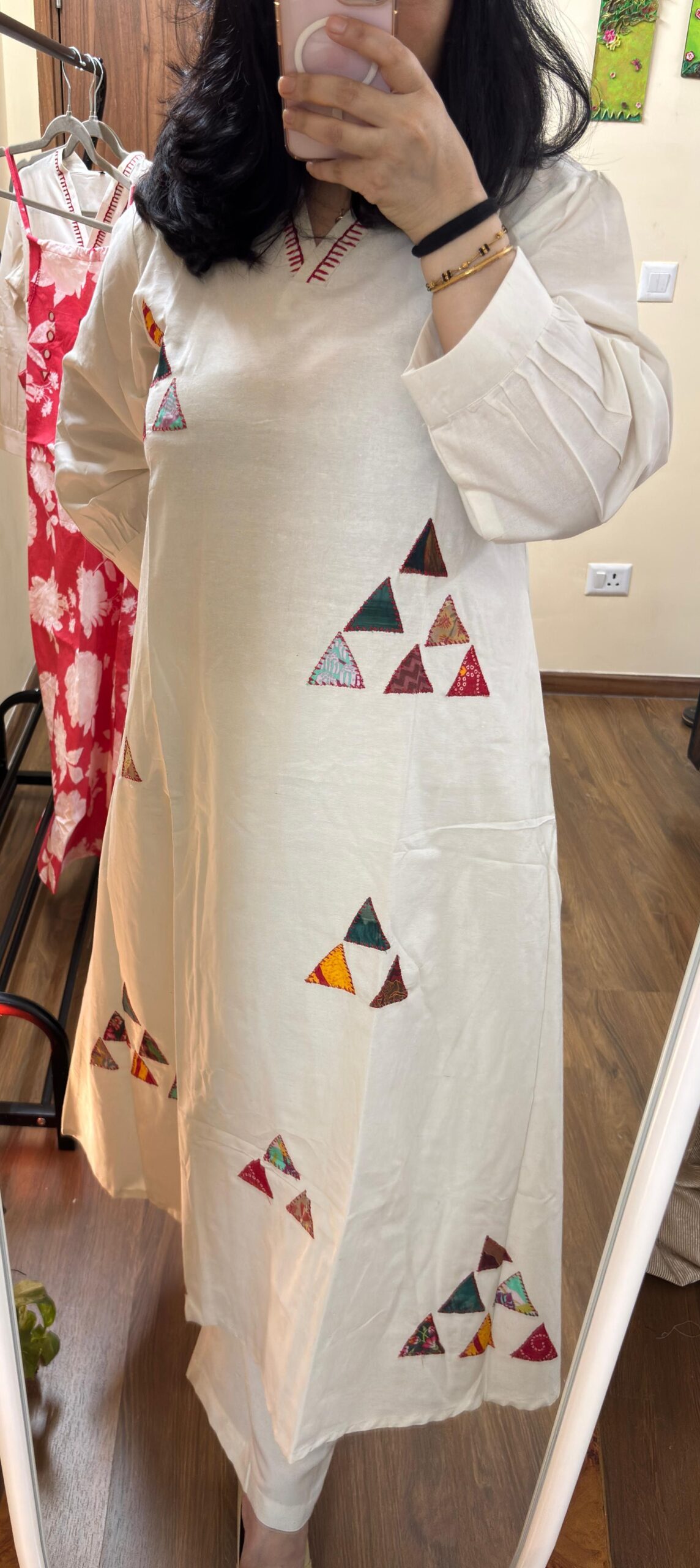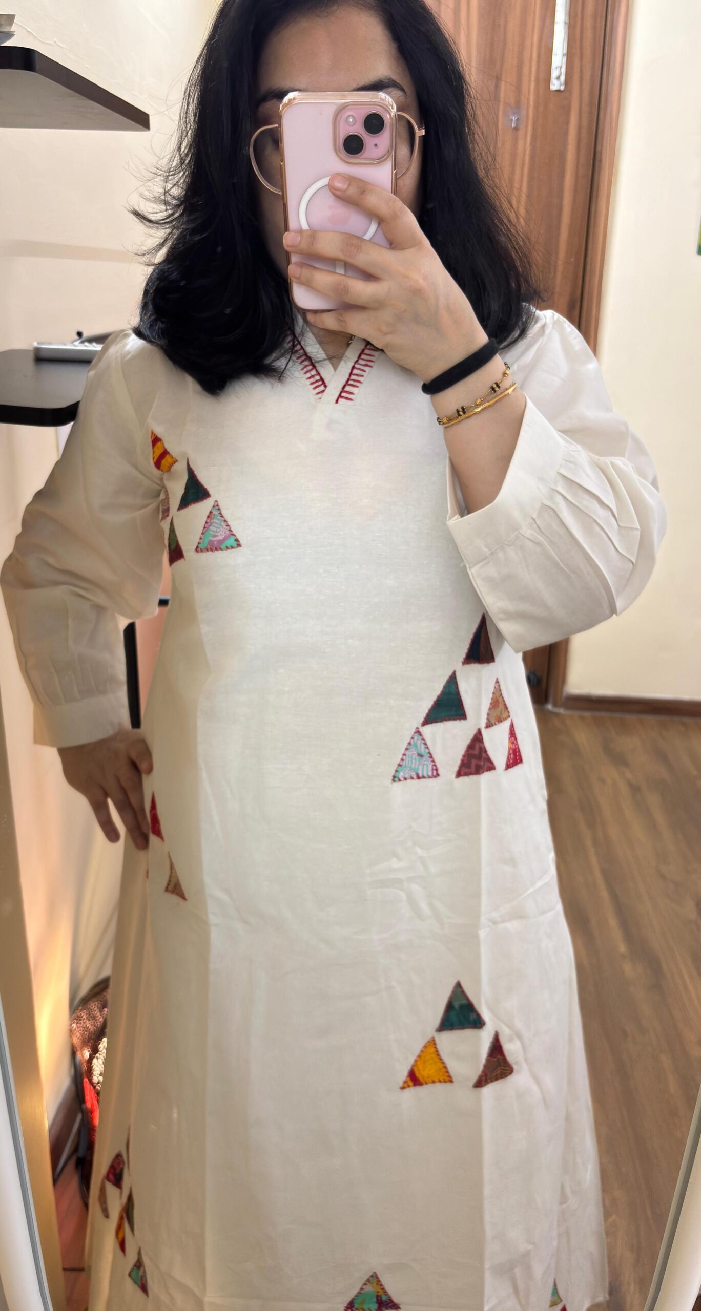 Top : Pure Khadi Cotton A-line with patch shape work detailing