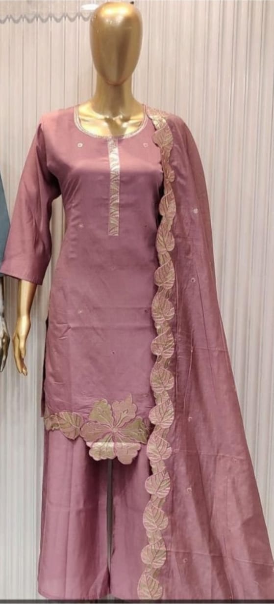 Dupatta: Roman Silk Fabric Dupatta with Leather Flower work at one side.