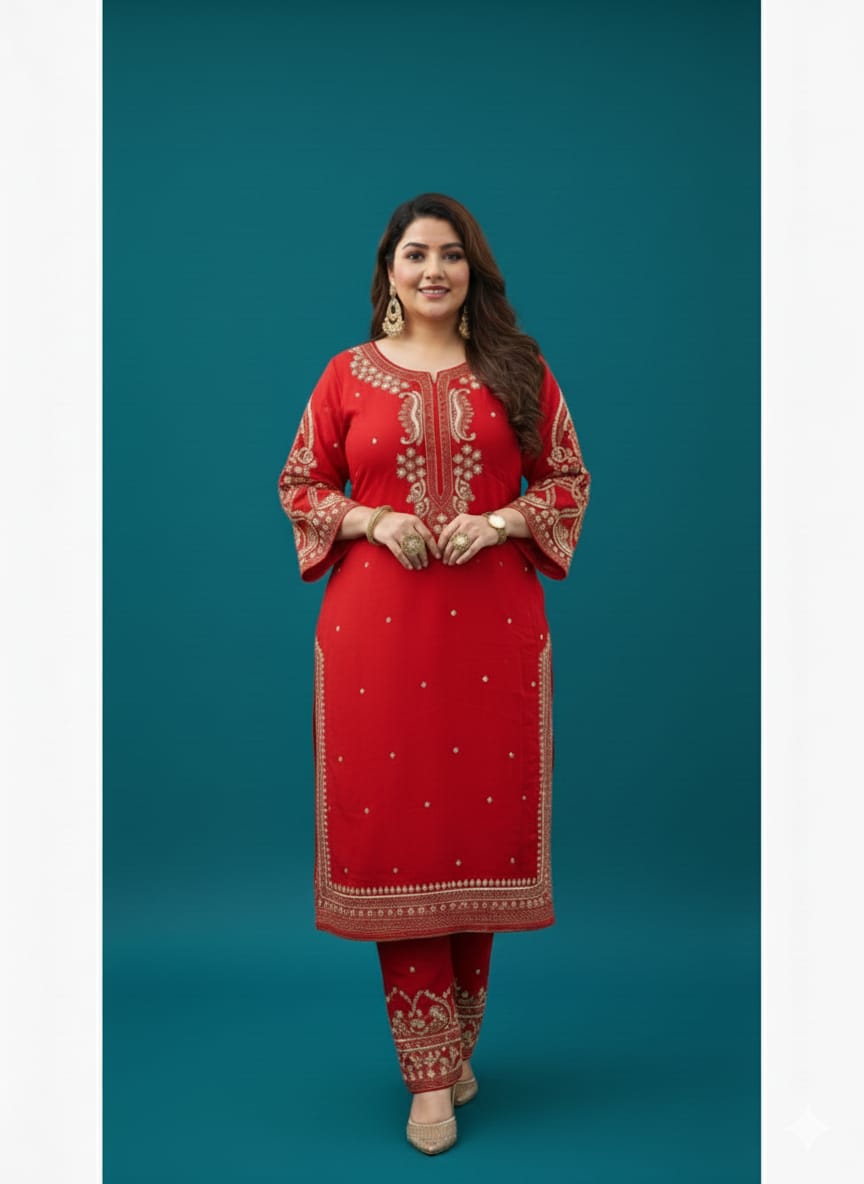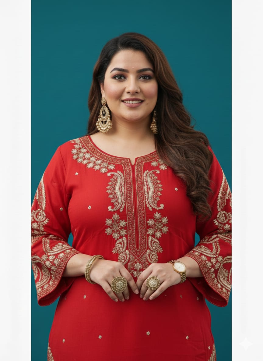 Bottom: Silk relaxed Pant with Lining attached with Heavy Similar Handwork on Hem.