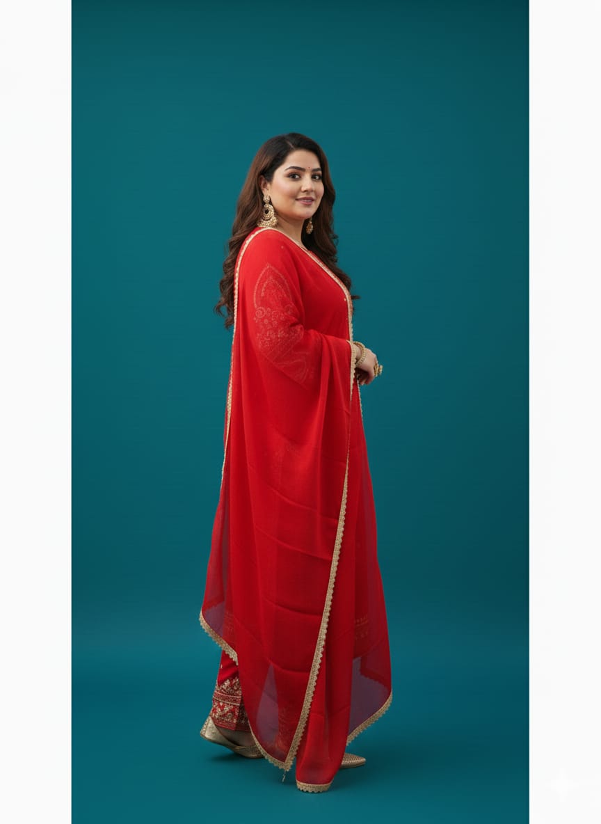 Dupatta: Crepe Dupatta with Pearl & Gotta lace detailing.