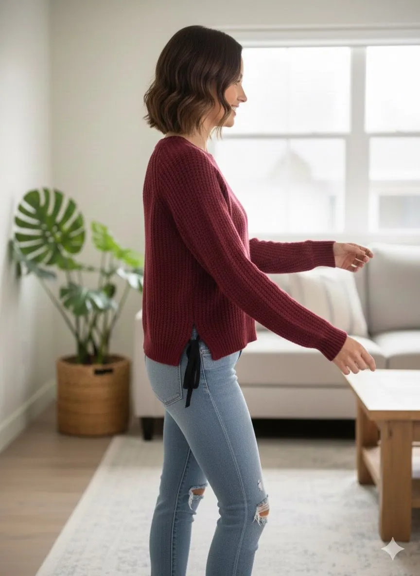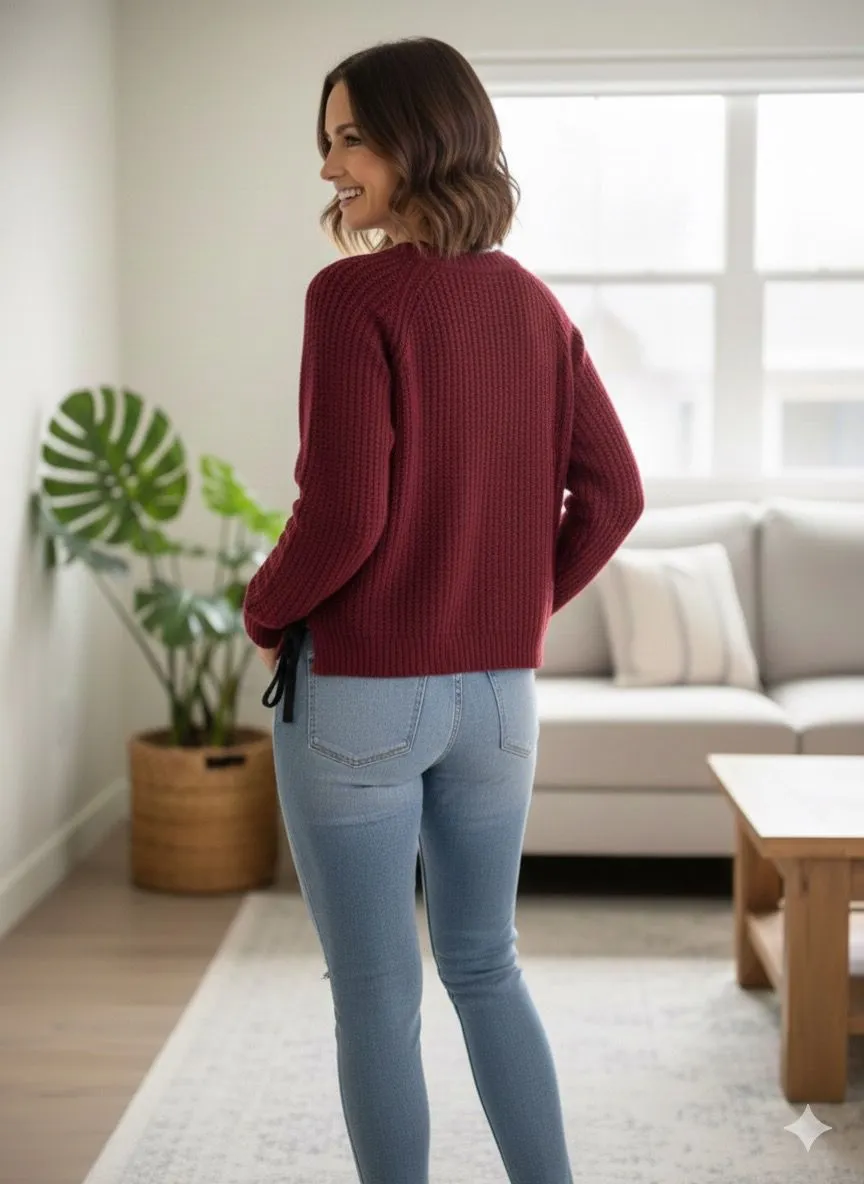 Wine Tying Pattern Knitted Top