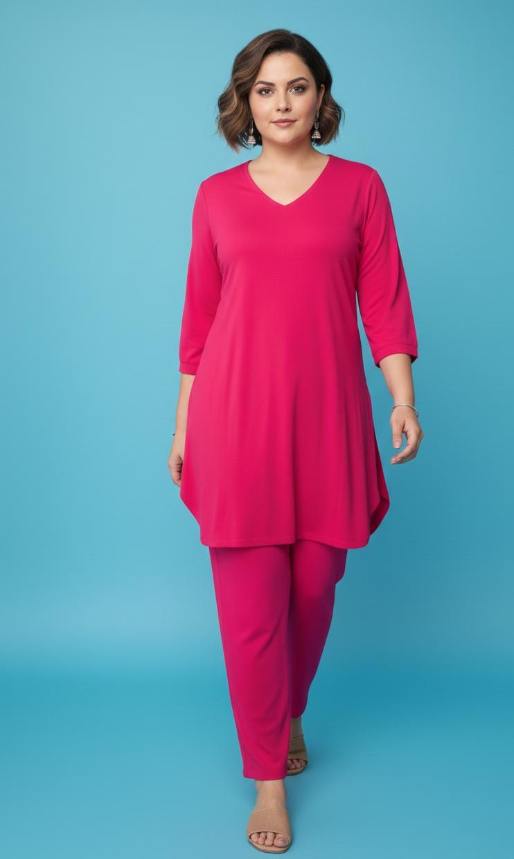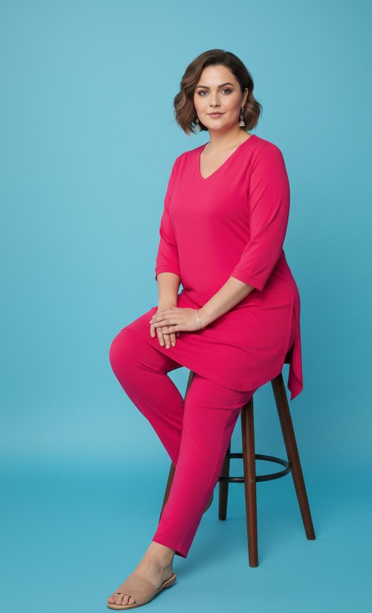 This elegant Solid Cotton Co-Ord Set for Women, designed for effortless comfort and minimal style. Made from soft and breathable cotton fabric, this coordinated outfit features a modern V-neck kurta with a relaxed silhouette paired with matching straight-fit pants for a clean and sophisticated look.